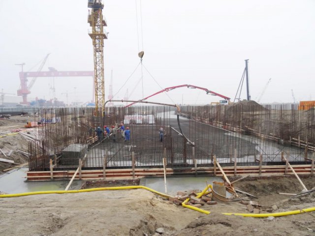 2017的1月3日,江蘇海新船務(wù)重工辦公生活區(qū)工程呈現(xiàn)忙碌的景象。辦公樓地下車庫(kù)--工人們正在澆灌混凝土;兩棟宿舍樓第三層--工人們正在制模;塔吊正在吊運(yùn)腳手材料;工程車正在轉(zhuǎn)運(yùn)...