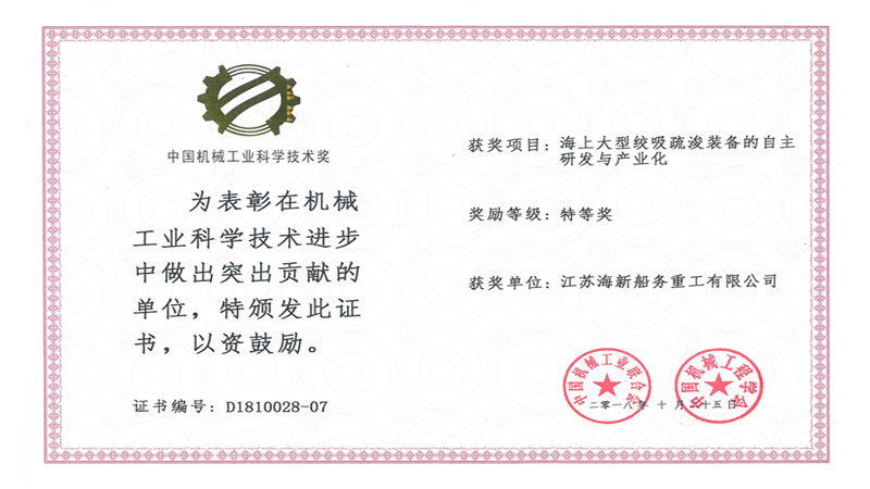 2018年10月25日,熱烈慶祝海新重工榮獲中國機械工業(yè)科學技術特等獎。...